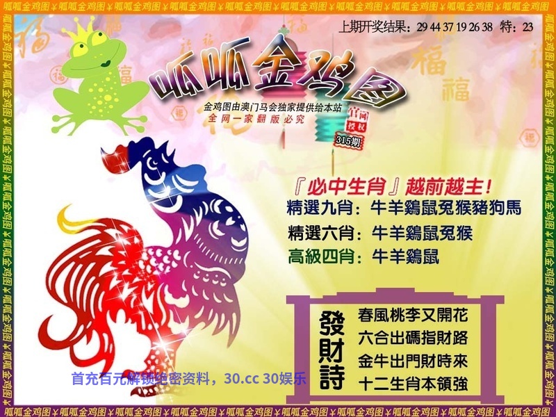 | 314期:七肖『猪虎马狗猴羊鸡』开羊23准 |